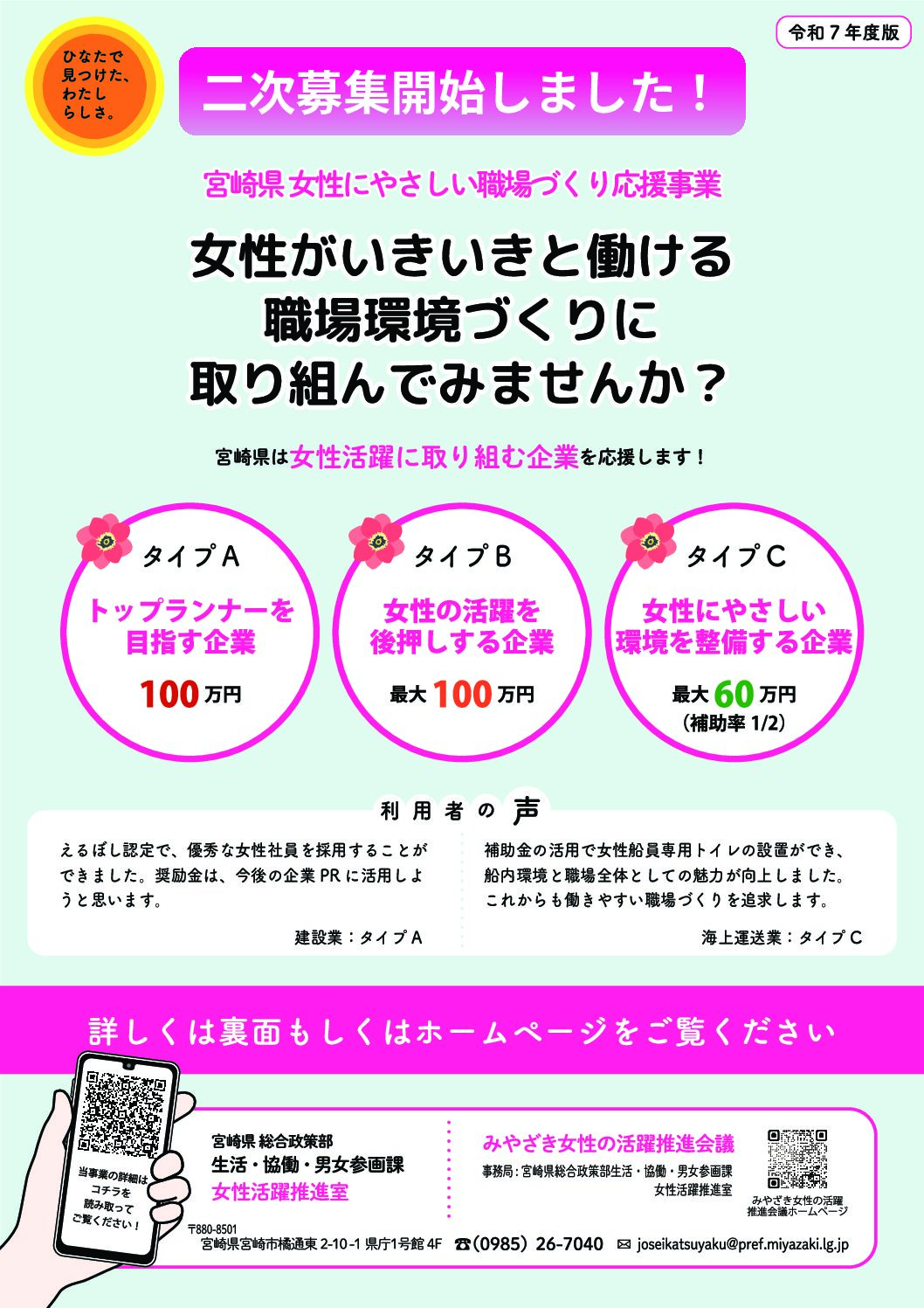 【女性にやさしい職場づくり応援事業】宮崎県は女性活躍に取り組む企業を応援します!